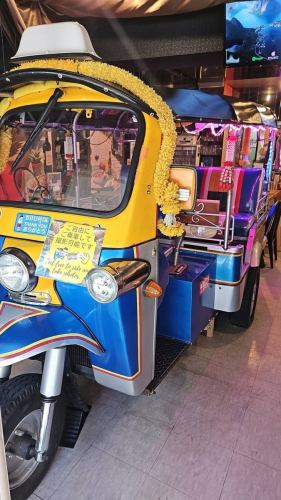 店内に飾られたトゥクトゥクは写真撮影やなかに乗ることもできます◎