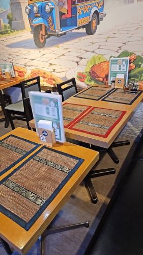 店内は明るく開放的な雰囲気で、にぎやかさと活気にあふれています。本場タイの装飾が並び、タイ風な内装が特徴です。2名様掛けのテーブルを6席ご用意しており、たくさんのお客様にご来店いただけます。デートやご友人との食事、ご夫婦での利用にぴったりなお店です。